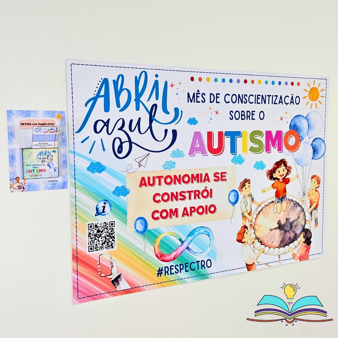 🔸Painel informativo sobre a campanha do Abril Azul (autismo), que trata do respeito e inclusão para transformar informação em acolhimento na sua comunidade.