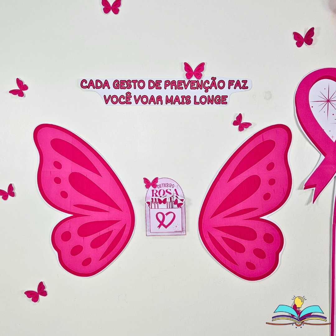 🔸Asas de borboleta com a caixinha de mensagens a respeito do Outubro Rosa.